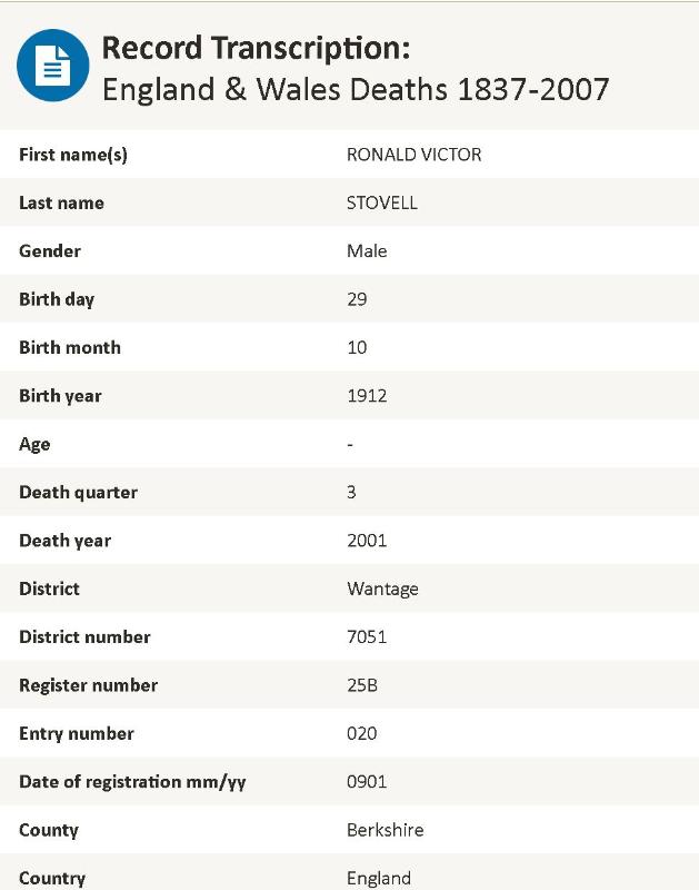 Ronald Victor STOVELL